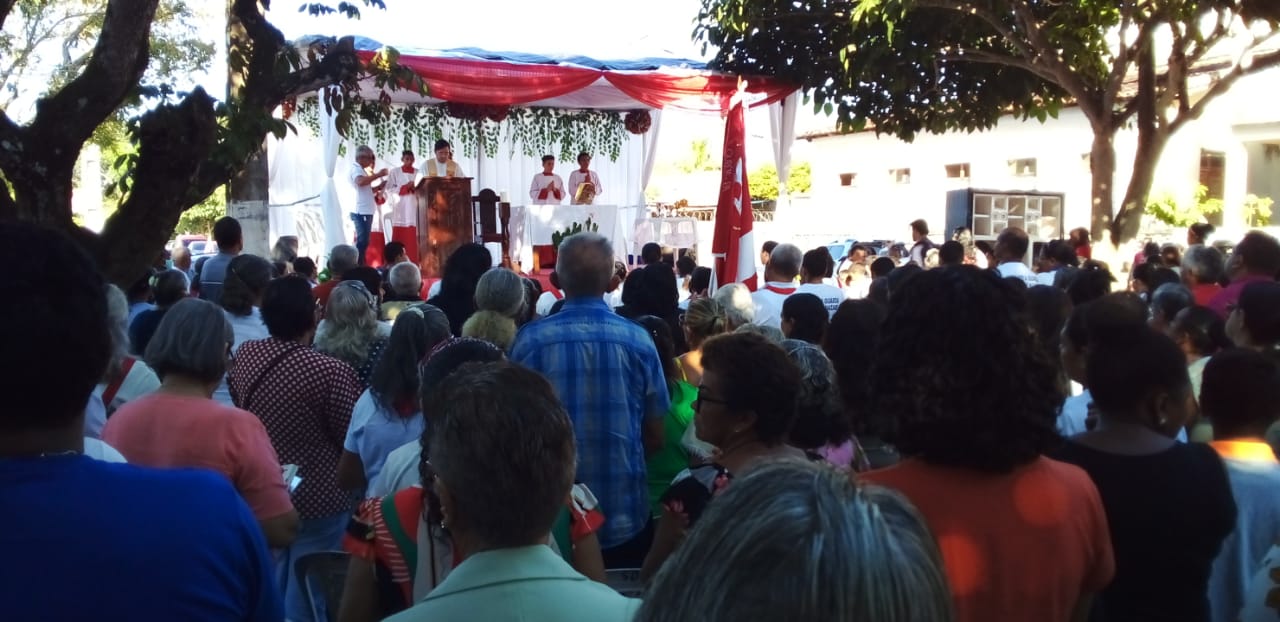 A procissão seguiu até a igreja matriz Nossa Senhora da conceição onde aconteceu a Missa campal celebrada pelo pároco Padre Sidney.