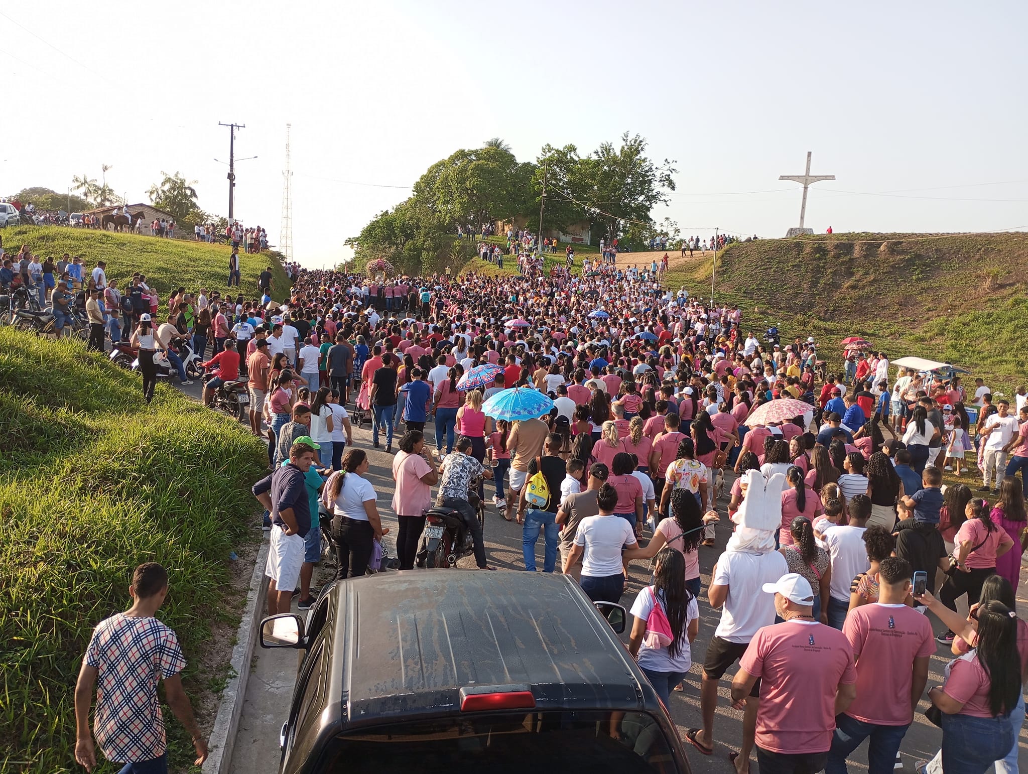 A romaria saiu às 7h da manhã do morro da capelinha, pelas ruas da cidade até a Igreja matriz, onde aconteceu a santa missa.