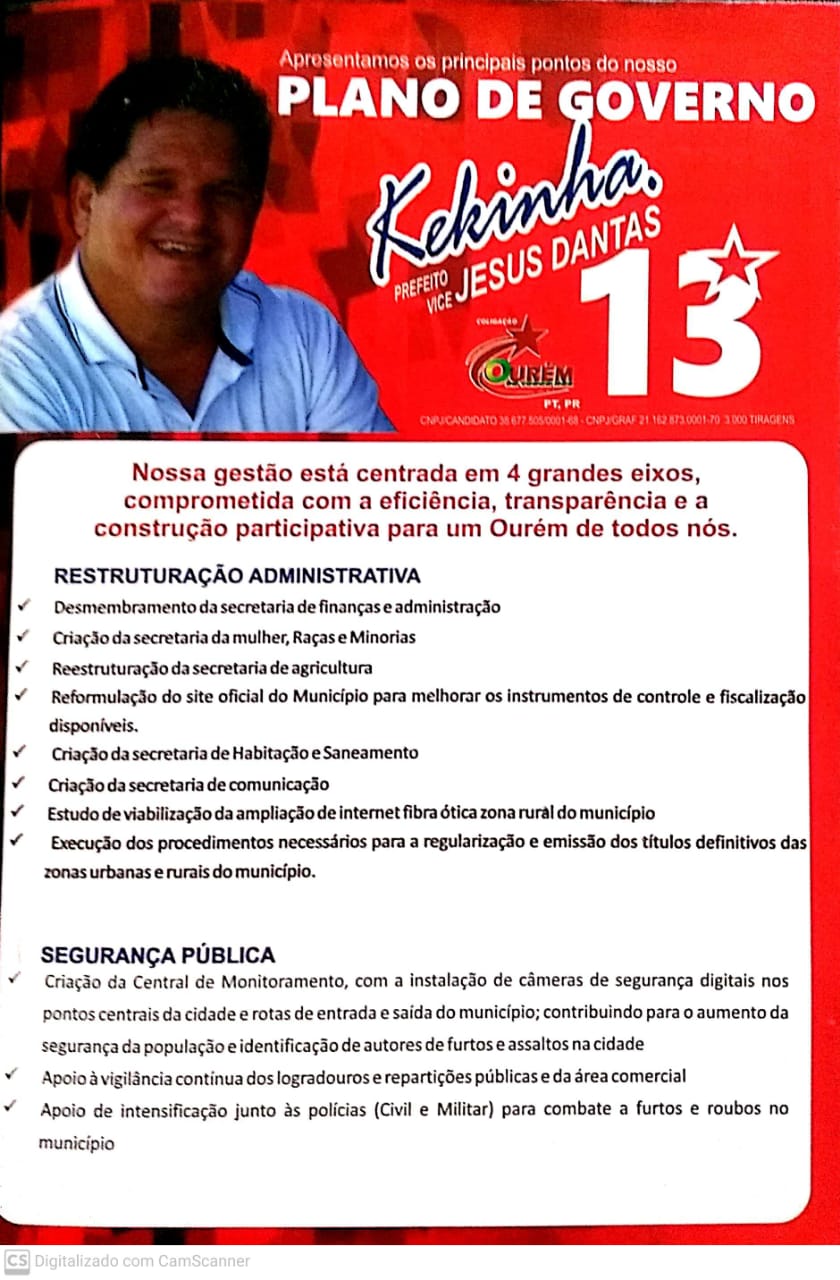 O Candidato a Prefeito de Ourem kekinha (13)  do partido dos trabalhadores PT mostra suas propostas e plano de governo
